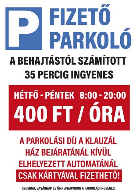 Értesítjük, hogy a Hajós Alfréd Tanuszoda Budapest 1222, Nagytétényi út 31-33. előtti zárt parkoló fizetős!